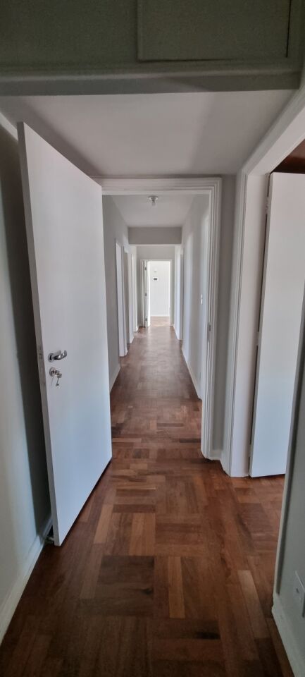 3 dormitórios com armário(suite), banheiro, lavabo, sala em L, cozinha com armários, área de serviço, quarto de empregada ou escritório, banheiro, 2 vagas pequenas